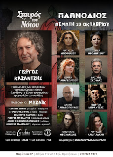 Το νέο άλμπουμ του συνθέτη Γιώργου Καζαντζή, κάνει στάση για μια πρώτη, συλλεκτική ζωντανή παρουσίαση στο Σταυρό του Νότου την Πέμπτη 23 Οκτωβρίου ΓΙΩΡΓΟΣ ΚΑΖΑΝΤΖΗΣ Παρουσίαση Δίσκου “Ο Πλανόδιος” Σταυρός του Νότου Πέμπτη 23 Οκτωβρίου Το νέο άλμπουμ του συνθέτη Γιώργου Καζαντζή, κάνει στάση για μια πρώτη, συλλεκτική ζωντανή παρουσίαση Η προπώληση […]