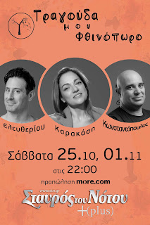 ΛΕΥΤΕΡΗΣ ΕΛΕΥΘΕΡΙΟΥ ΕΛΕΝΗ ΚΑΡΑΚΑΣΗ ΑΛΚΙΒΙΑΔΗΣ ΚΩΝΣΤΑΝΤΟΠΟΥΛΟΣ Τραγούδια του Φθινοπώρου Σάββατα 25 Οκτωβρίου & 1 Νοεμβρίου Σταυρός του Νότου Plus Η προπώληση ξεκίνησε Ο Σταυρός του Νότου Plus υποδέχεται τον Λευτέρη Ελευθερίου, την Ελένη Καρακάση και τον Αλκιβιάδη Κωνσταντόπουλο σε μια βραδιά με φθινοπωρινή διάθεση και αγαπημένα τραγούδια που έχουν αφήσει το στίγμα τους στην ελληνική και ξένη μουσική σκηνή. […]